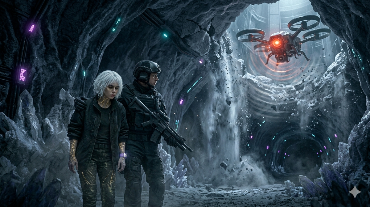 Дорога из соляных шахт превратилась в лихорадочный бред. После того как «Омега» выстрелила сигналом в небо, Ключ в моих жилах не просто затих — он словно вымер, оставив после себя выжженную пустыню. Каждое движение отдавалось в костях звоном разбитого стекла. Варг почти тащил меня на себе через бесконечные технические колодцы, где стены сочились горькой влагой, а воздух был настолько густым от соляной пыли, что казался осязаемым.