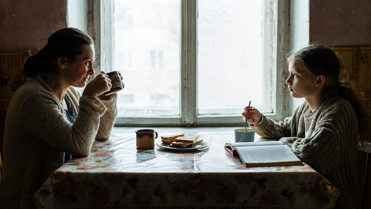 Они поели почти молча — Соня листала учебник, Вера смотрела в окно. Потом Соня встала, чтобы унести тарелку.