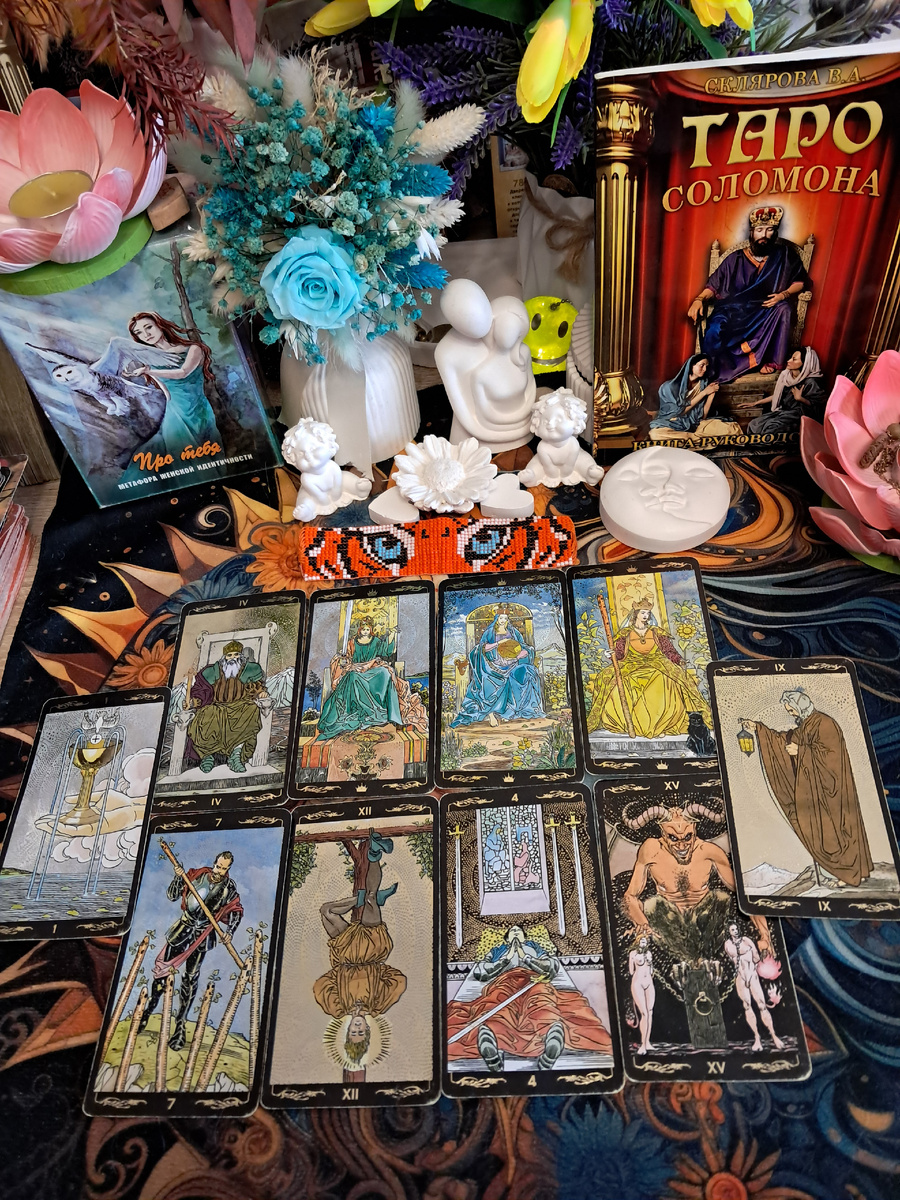Вместе эти четыре карты — портрет женщины, которая становится сама себе опорой, королевой и императором одновременно. Вы перестаёте искать «спасителя» или «стену» в мужчине, потому что строите эту стену внутри себя. И это не означает отказа от отношений, наоборот — вы входите в них из полноты, а не из дефицита.