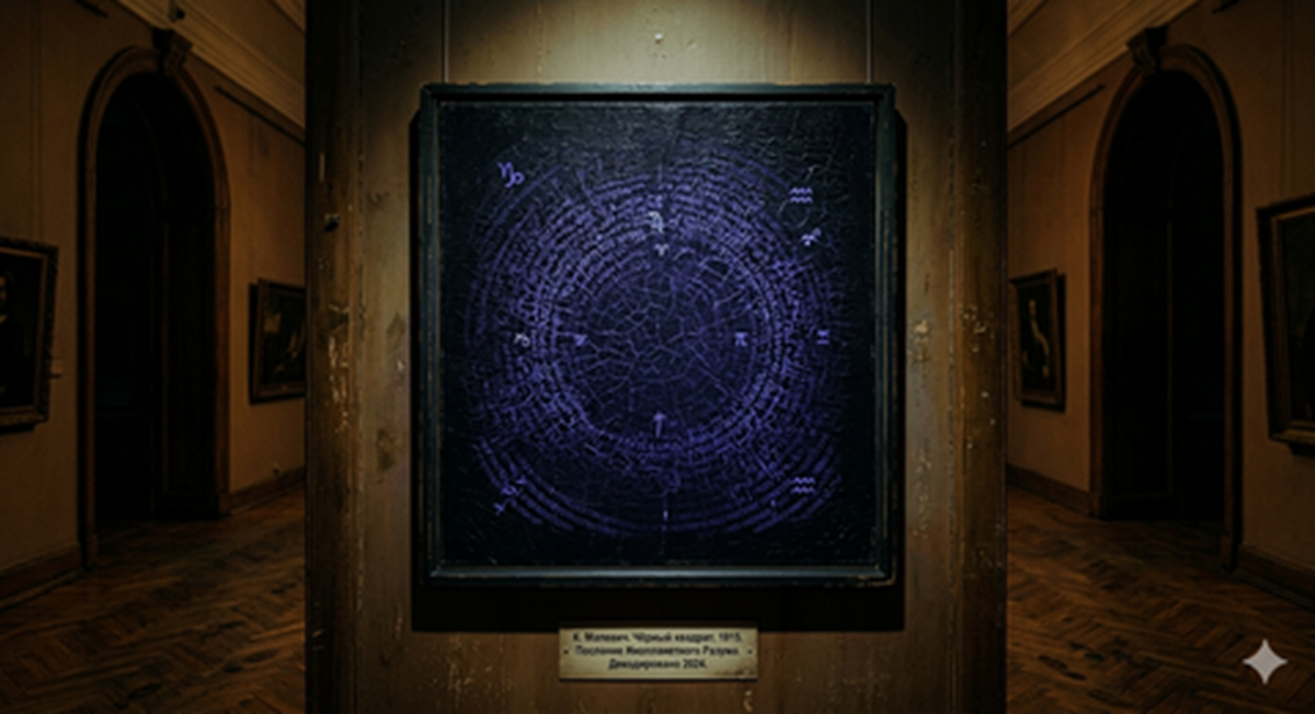 История искусства полна попыток объяснить радикальный жест Казимира Малевича, но что, если мы веками смотрели не в ту сторону? Традиционное искусствоведение видит в «Черном квадрате» финал живописи или триумф беспредметности. Однако при ближайшем рассмотрении эта геометрическая бездна подозрительно напоминает не эстетический манифест, а спрессованный информационный пакет, оставленный тем, чья логика фундаментально отличается от человеческой. Малевич утверждал, что «преобразился в нуле форм» и выудил квадрат из «бездонного океана». Это описание пугающе совпадает с современными гипотезами о передаче данных через квантовую сингулярность. Если представить «Квадрат» как своего рода QR-код начала XX века, его монохромная структура становится идеальным контейнером. Органический мир хаотичен и фрактален, в то время как абсолютная геометрия - это универсальный язык математики, понятный в любой точке Вселенной. Всмотритесь в его пропорции: в них скрыты не просто мазки кисти, а фундаментальные ко