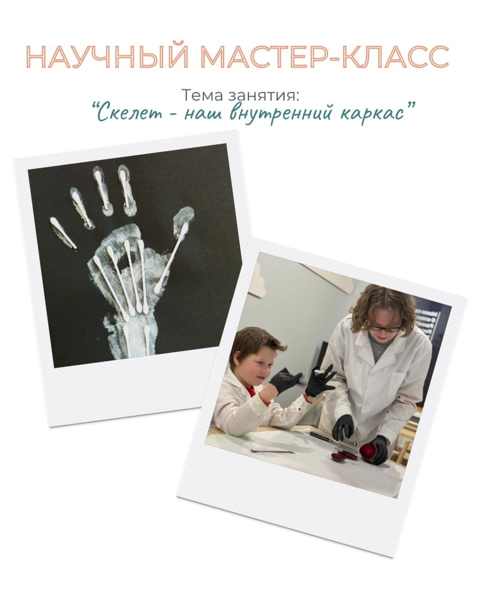 🤩 Тема вечера — «Скелет - наш внутренний каркас» 🔵Разберем в чем заключается функция опорно-двигательной системы 🔵Сделаем отпечаток собственной руки и посмотрим, как внутри нее располагаются кости 🔵Наглядно узнаем, за счет чего сгибается наша рука, смастерив ее макет из картона ⏰ Когда? 25 марта в 19:00 🗝 Стоимость пробного посещения — 1 000 ₽ ⏳ Продолжительность — 90 минут Запишитесь прямо сейчас: ✏️ На нашем сайте 📞 У Администратора @arbitrika_admin До встречи в Арбитрике 🌟