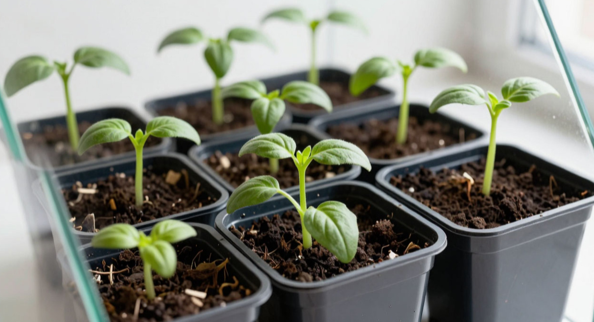 Вытянувшаяся рассада — проблема, знакомая каждому огороднику. Сеянцы тянутся к свету, стебли становятся тонкими, хилыми, потом падают и гибнут. Досветка спасает, но не всегда. Оказывается, есть простой приём, который заставляет растения расти коренастыми, даже если света мало. При появлении первых петель — сразу ставлю рассаду под наклоном к стеклу. Стебли не тянутся, растут ровными, как по струнке. И никакой дополнительной подсветки. Секрет в том, что растения всегда тянутся перпендикулярно источнику света. Если поставить ёмкость с рассадой под наклоном, сеянцы будут расти не вверх, а под углом, выравниваясь постепенно. Это укрепляет стебли и предотвращает вытягивание. Когда семена прорастают, сеянцы начинают активно тянуться к свету. Если ёмкость стоит ровно, они растут строго вертикально вверх. Если поставить её под наклоном, ростки будут тянуться перпендикулярно поверхности, но из-за наклона ёмкости их стебли оказываются изогнутыми. В процессе роста они выпрямляются, набирая крепос