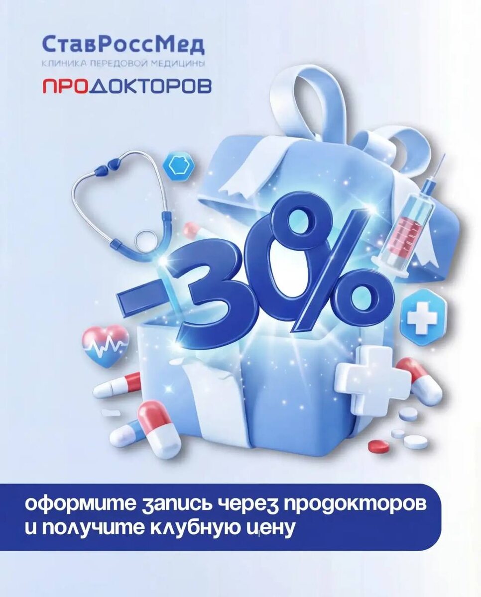 ? Самое время заняться здоровьем — сейчас это ещё и по приятной цене. В коллаборации с ПроДокторов мы запускаем скидку 🔤3️⃣0️⃣ 🔤🔤🔤🔤🔤🔤🔤🔤🔤 на приём к врачам клиники «СтавРоссМед» Это хороший повод: — записаться к специалисту, к которому давно планировали — проверить здоровье без лишних сомнений — наконец разобраться с тем, что беспокоит Не откладывайте — используйте возможность сейчас. 📲 Записывайтесь через ПроДокторов и получайте клубную цену Подробности и список специалистов — на сайте.