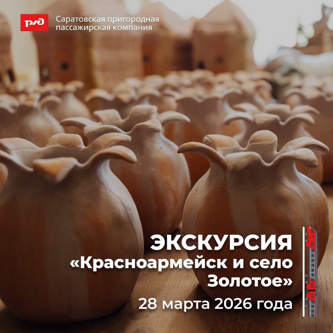 ✨ 28 марта состоится однодневная поездка в Красноармейск и село Золотое с мастер-классом в гончарной мастерской «Керамика.Золотое» ✅ Что нас ждет? • Прогулка с экскурсией по историческому Красноармейску: кирпичные дома с мозаичной кладкой и атмосфера рубежа XIX–XX веков • Уникальный практический мастер‑класс в «Керамика.Золотое»: сделаете собственное глиняное изделие под руководством мастера • Обед в местном кафе • Трансфер включён ✅ Программа и логистика: • Даты: 28 марта • Отправление: на электричке от ст. Саратов‑1 в 07:29 → прибытие на ст. Карамыш в 09:46 (дальше — трансфер до Золотого и Красноармейска). • Обратный путь: отправление со ст. Карамыш в 16:04 → прибытие на ст. Саратов‑1 в 18:22. ✅ Стоимость (пакетный тур): • Взрослый — 2550 руб. • Школьники и студенты — 2340 руб. (при наличии льготной транспортной карты вместе со справкой с места учёбы/студенческим) • Сопровождающий организованной группы более 10-ти человек - 1300 руб. 📞 Как записаться? Звоните по вопросам бронир