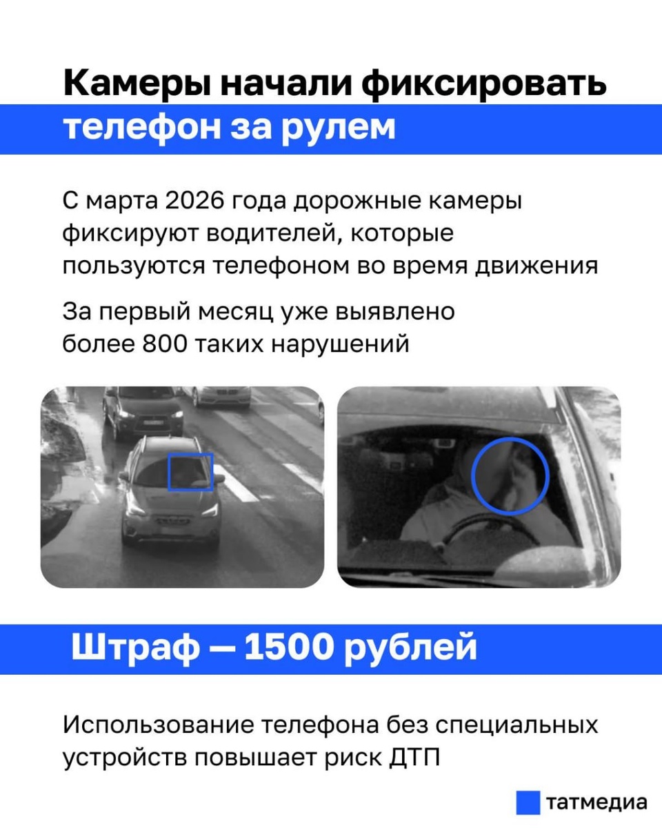 📱🚗 Камеры в Татарстане начали фиксировать использование телефона за рулём