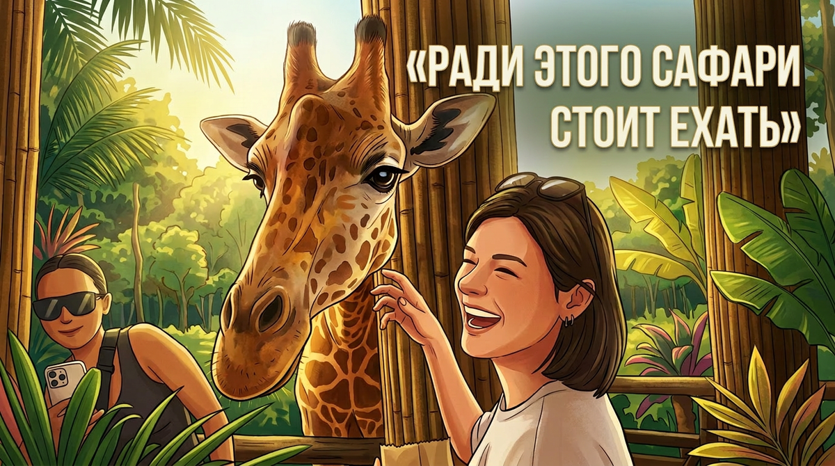 Но главным символом этого сафари для нас стали жирафы. Вот это действительно гвоздь всей программы. Их можно кормить, и именно здесь эмоции просто зашкаливают: жирафы подходят совсем близко, рядом оказываются и большие, и маленькие, а их огромные языки производят просто неизгладимое впечатление. Обычный набор для кормления стоил 40 000 донгов, но когда мы подошли, остались только комбо-наборы с игрушкой за 145 000 донгов. Всё равно взяли — и ни капли не пожалели.