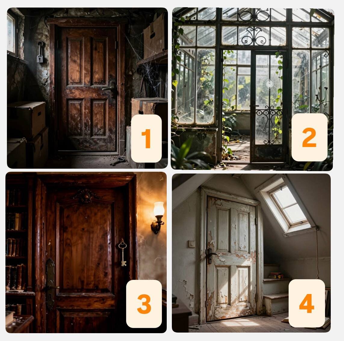 Сегодня будем выявлять сферу жизни, которая требует внимания прямо сейчас. Посмотрите на эти четыре двери. Какая из них притягивает ваш взгляд? Она может бесить, не нравиться, но манит…. Какая дверь вызывает смутное желание заглянуть внутрь? Доверьтесь интуиции: она укажет, куда нужно посмотреть в первую очередь. Выберите интуитивно одну из четырех картинок и только после этого переходите читать расшифровку вашего «слепого пятна» на текущий момент. И может быть, эта подсказка будет важным / нужным знаком на вашем пути. РАСШИФРОВКА ТЕСТА Если вы выбрали картинку 1, ваше слепое пятно - НЕЗАВЕРШЕННЫЕ ДЕЛА И НЕПРОЖИТЫЕ ЭМОЦИИ Что скрыто? Вы складируете в «подвал» всё, что когда-то было важно, но потом потеряло актуальность, или то, с чем вы не смогли справиться. Это могут быть незавершенные проекты, невысказанные обиды, старые долги, непрожитая боль или чувство вины. Вы надеетесь, что «оно само рассосется», но оно занимает место и тянет энергию. Почему важно посмотреть? Этот «подвал» как