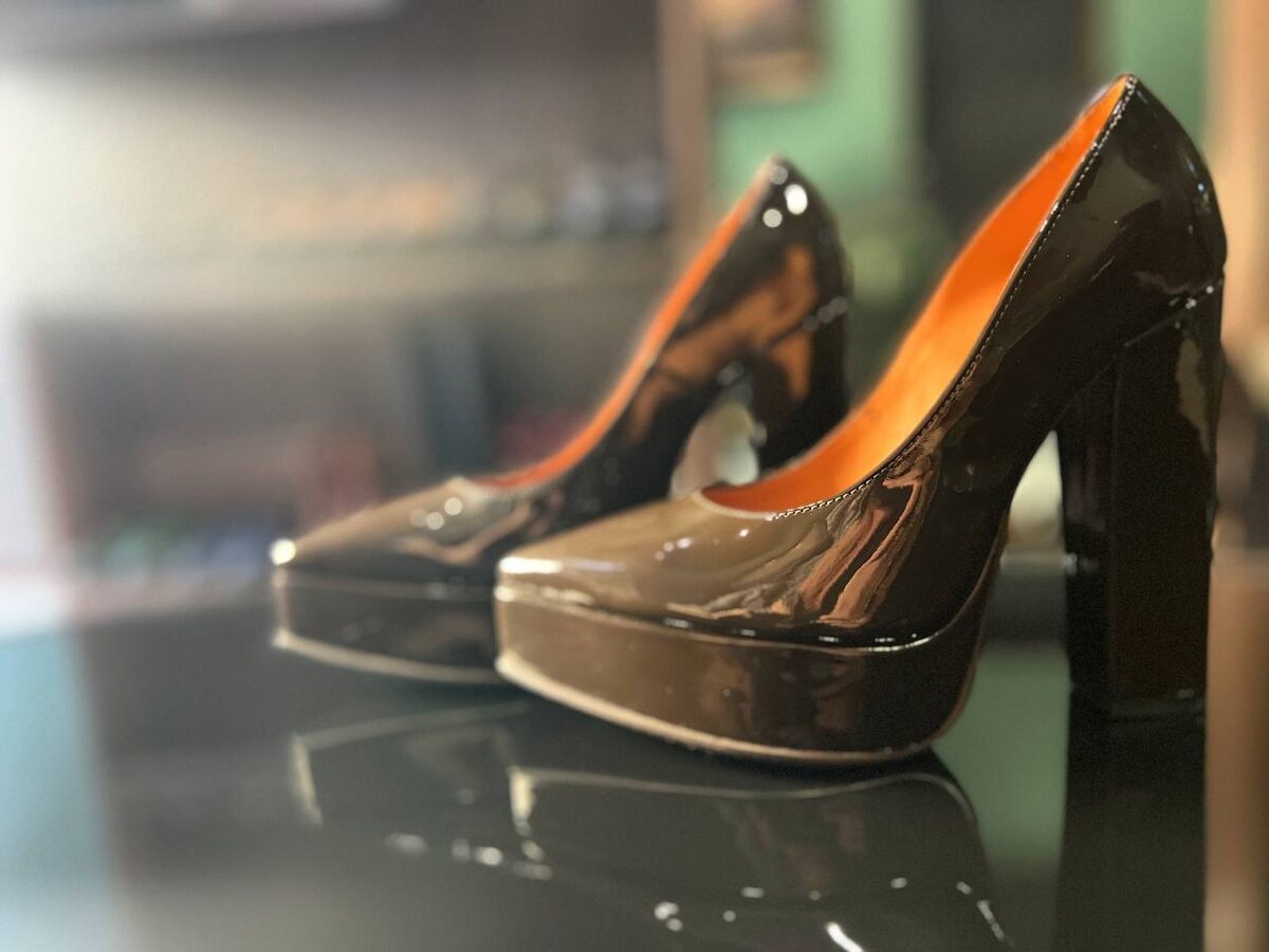Коричневый лаковые туфли на платформе с каблуком 12 см индивидуально по меркам стопы на колодке le silla от Inbespoke