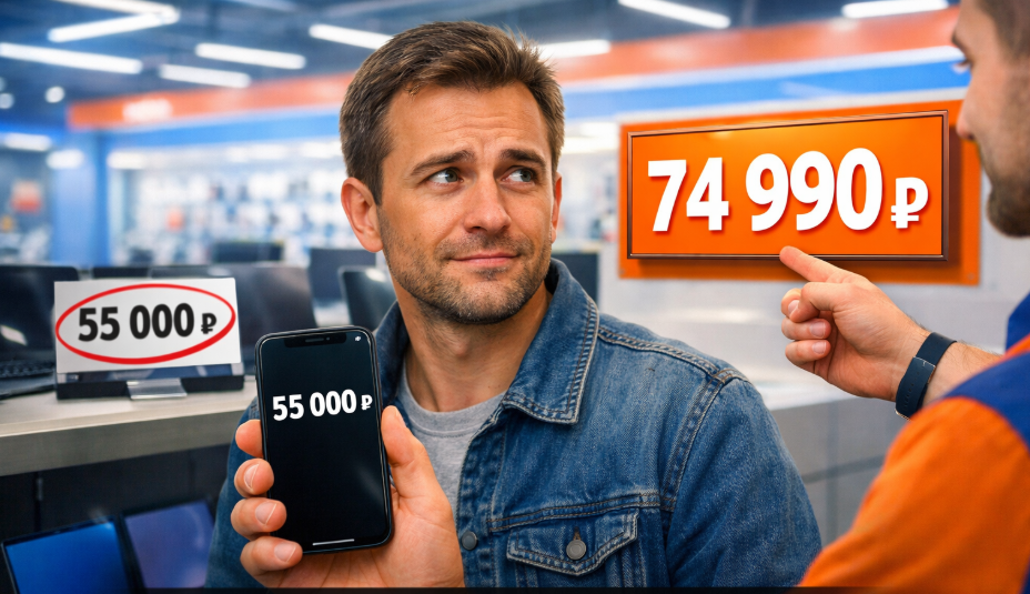 Три года назад я пошёл в DNS за ноутбуком. У меня был чёткий бюджет - 55 тысяч рублей. Ровно. Вышел из магазина с ноутбуком за 74 тысячи и расширенной гарантией, которую никогда не использовал. Что произошло? Я произнёс несколько фраз, которые продавцу буквально открыли зелёный свет.