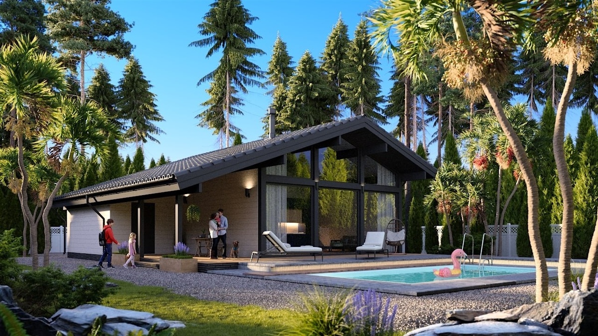 Проект «Кёльн» разработан как современный фахверковый дом для регионов с мягким и тёплым климатом. Архитектура дома сочетает открытое пространство, большое количество света и функциональную планировку. Одной из ключевых особенностей проекта является панорамное остекление. Оно создаёт визуальную связь с окружающей природой и наполняет дом естественным светом. В проекте также предусмотрена просторная терраса с бассейном — зона отдыха, которая становится продолжением жилого пространства.