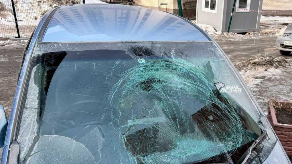 В Новосибирске днём 22 марта в 15:30 на улице Большевистской на минивэн Honda Freed упал кусок льда с пешеходного перехода. От удара лобовое стекло машины разбилось.