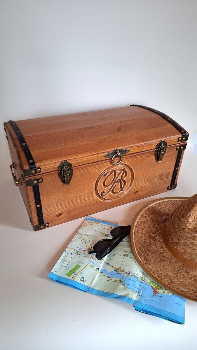 Сундук с личным вензелем с резьбой и круглой крышкой для хранения впечатлений
