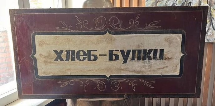 Сразу детство вспомнилось. Наклонные стеллажи, запах хлеба, ложка, чтобы проверить мягкость, половинка бородинского. #СССР #дерево #торговля Таблички СССР в Мах