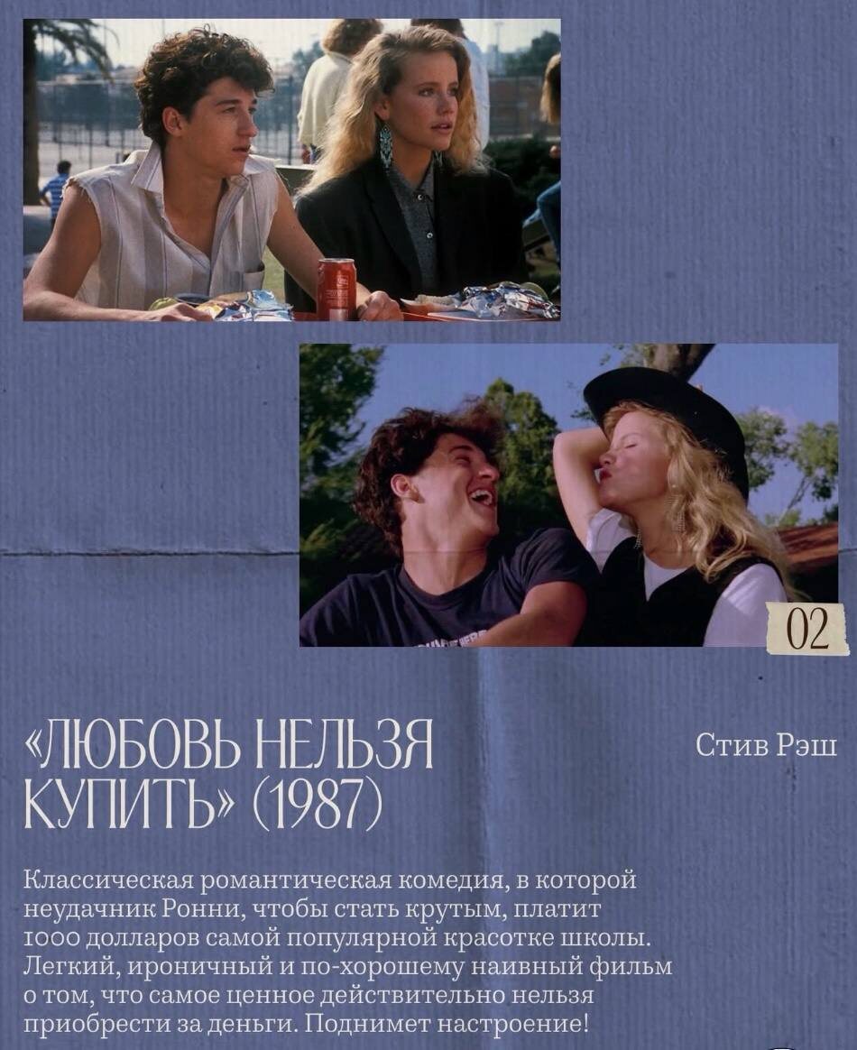 Can't Buy Me Love (1987) 🗓️ 26 марта в 19:00 📍 Джипси офис, Гончарова 30 стр 1 Культовая романтическая комедия 80-х. Мечтая стать «крутым парнем», старшеклассник-неудачник Рональд Миллер идёт на отчаянный шаг — он платит самой популярной девушке школы, чирлидерше Синди, чтобы она притворилась его девушкой… Но что будет, когда фиктивные отношения превратятся в настоящие чувства? В главных ролях: ⭐ Патрик Демпси ⭐ Аманда Петерсон Продолжительность: 1 час 34 минуты 🏷️ 100₽ + напиток в баре Бронь мест : @natyshal #26марта26@culturnik 🕊️пойду • ❤️ нравится • ✅рекомендую