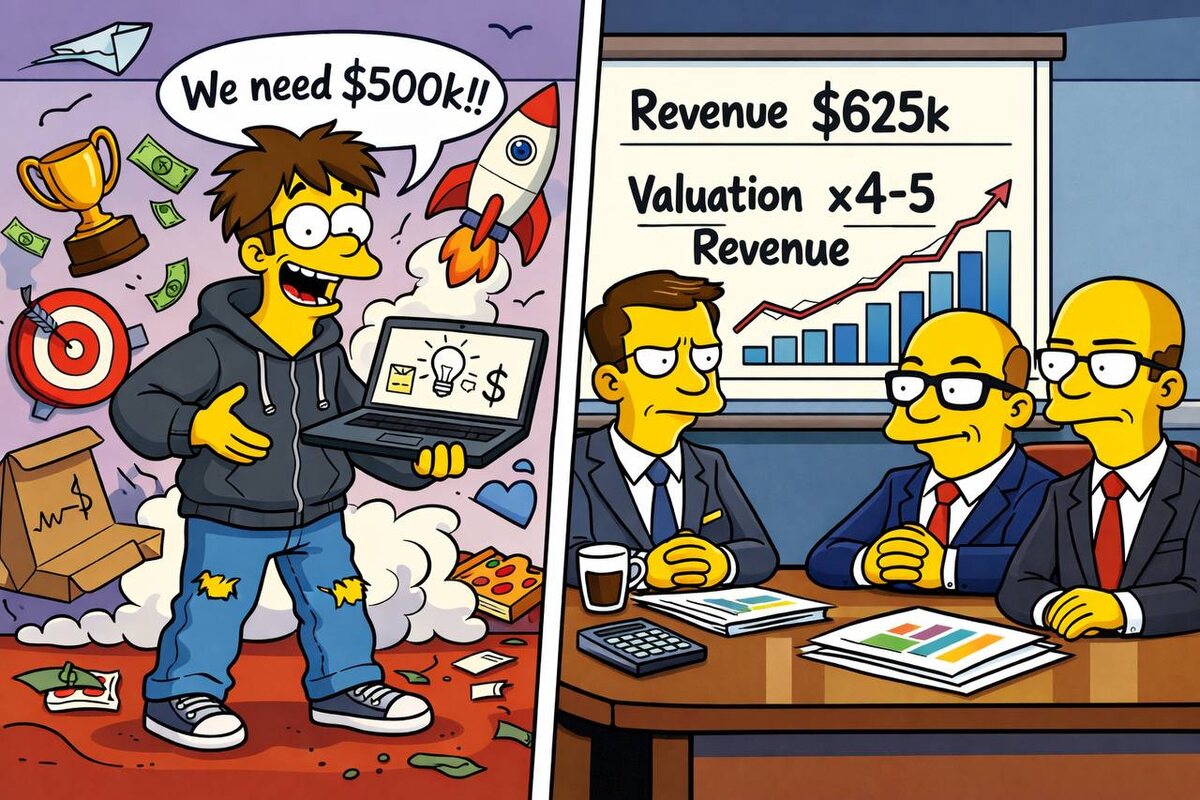 Сидели мы на зум звонке и обсуждали оценку стартапов и я понял простую вещь: Рынок в среднем оценивает стартапы примерно в x4–5 к выручке (мультипликатор - во сколько раз инвестор умножает доход, чтобы получить стоимость компании). Дальше математика: Хочешь поднять 500k за 20%? Значит оценка всей компании - 2.5 млн. Делим на 4 - получаем ~625k выручки. И тут до меня доходит: чтобы честно просить 500k, у тебя уже должно быть ~625k годовой выручки. А теперь вспомни, как же в прошлом мы были наивны 😹 мы ходили к инвесторам: нулевой выручкой, идея на салфетке и запрос «дайте 500k» Рынок так не работает. Инвестор больше не верит в идею - он дисконтирует риск (снижает цену из-за неопределенности). Что с этим делать? 1. Сначала делай выручку, потом поднимай деньги. 2. Если выручки нет - готовься отдавать больше доли. 3. Всегда считай оценку от обратного - от денег, которые хочешь привлечь. Пример: Хочешь 1 млн за 10%: оценка = 10 млн реалистично → нужна выручка 2–2.5 млн Но ко