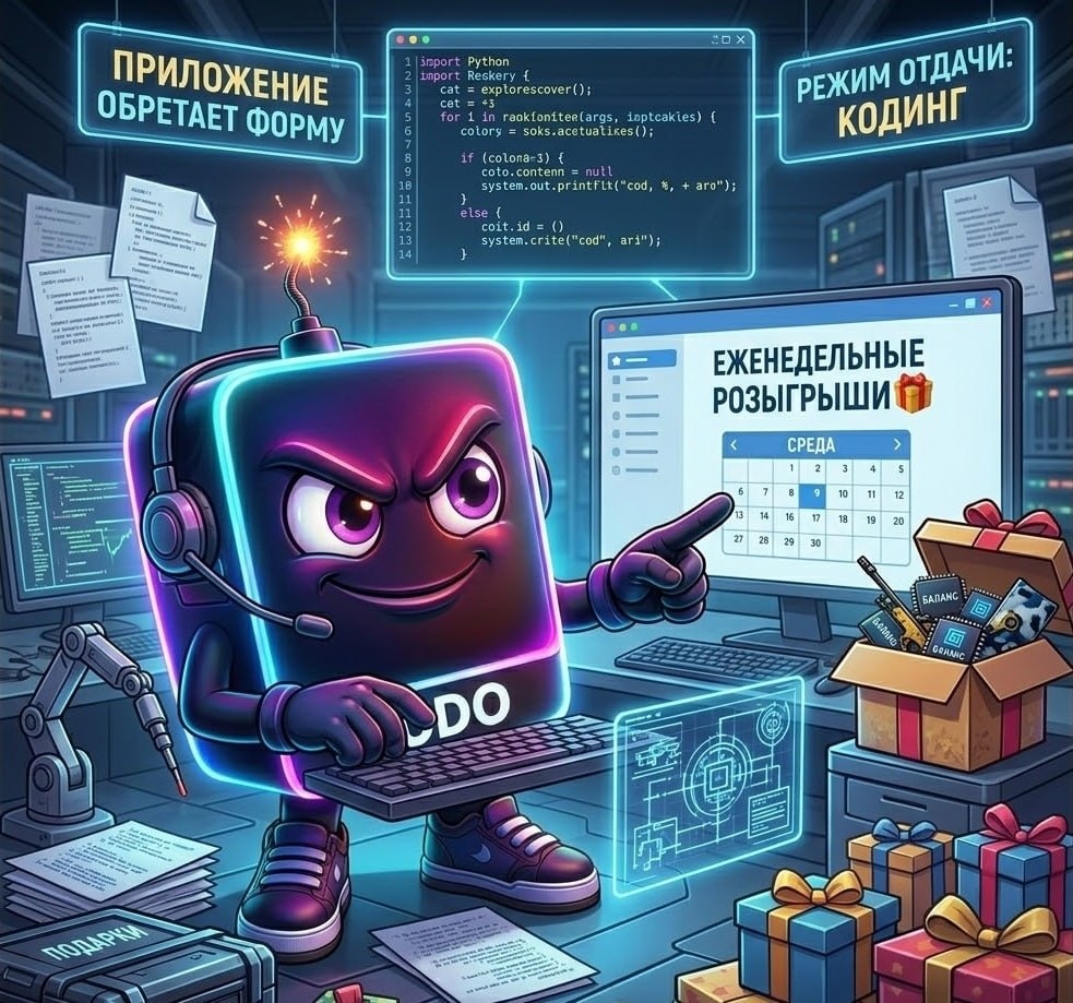 👨💻 Заметили, что новостей стало меньше? Не теряйте, мы ушли с головой в разработку. Кто внимательно следит за нашим ботом, тот уже видел жирный намек на то, что мы готовим... Да, приложение потихоньку обретает форму. 🔸Чтобы не отвлекаться от тестов и кодинга, мы переходим на «режим отдачи». Новостей по пустякам не будет - только самый сок и важные апдейты. 🔸Но есть и пушечная новость: мы запускаем конвейер подарков! 🎁 Теперь розыгрыши в канале станут еженедельными. Каждую среду (да-да, дропчик в кс и от нас) - новый шанс залутать скины или баланс, пока мы допиливаем софт. Концентрируем силы на продукте, а вам за ожидание — регулярные бонусы. 🤝 Как вам такой план на ближайшее время? 🔥 - Жду приложение, не отвлекайтесь! ⭐️ - Еженедельные розыгрыши — это имба 🤡- Пойду еще раз намек в боте перепроверю 🗡- Газуйте, верим в проект!