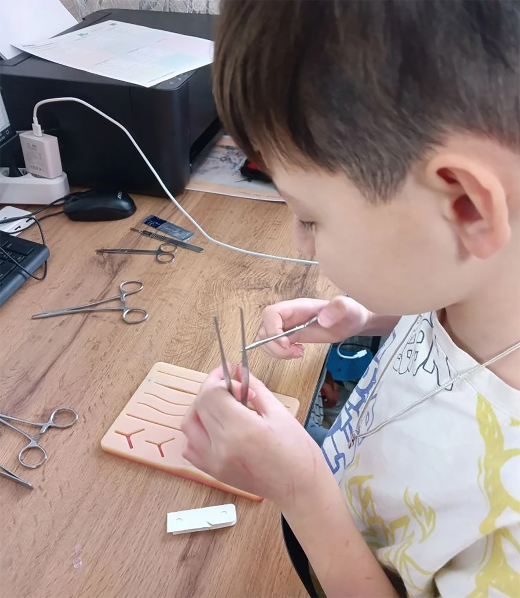 В маленьком городке под Москвой, где золотая осень осыпает улицы тихим шорохом, подрастает настоящий герой нашего времени — одиннадцатилетний Саша. Его глаза светятся не просто детским любопытством, а тем самым священным огнем, который ведет великих врачей к их призванию. Еще в детском саду, когда другие мальчишки играли в машинки, Саша не расставался со своей «волшебной сумкой». В ней всегда был арсенал спасателя: пластыри, бинты и салфетки. Каждая разбитая коленка товарища становилась для него важным заданием, а спасенная от когтей хищника кошка — первым серьезным пациентом. Этот мальчик храбр: даже уколы после укуса крысы не испугали его, ведь на кону была чужая жизнь! Дома Сашу поддерживают как в настоящем штабе подготовки специалистов. Пока сверстники листают комиксы, он изучает атлас анатомии, купленный на Ozon, бережно прослеживая пальцами переплетения мышц и сосудов. А недавно его комната превратилась в филиал современной клиники: с хирургическим набором Primax он оттачивает