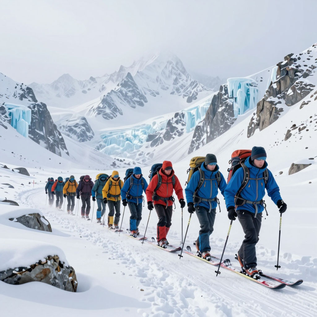 - Двигайся поочерёдно, выдерживая дистанцию 20–30 м, чтобы не спровоцировать сход лавины.