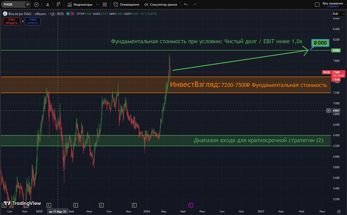 💰 Финансовая часть (по состоянию на крайние данные, годовые) 💭 Масштаб бизнеса подтвержден выручкой в 578,39 млрд ₽, что подчеркивает лидерские позиции компании на рынке. Операционная прибыль EBIT составляет 172,29 млрд ₽, демонстрируя хорошую операционную эффективность и способность стабильно получать доходы от основной деятельности. Чистая прибыль в размере 115,34 млрд ₽ подчеркивает общую прибыльность бизнеса и открывает перспективы дивидендных выплат. 💳 Свободный денежный поток в объеме 46,09 млрд ₽ остается стабильным, позволяя инвестировать в рост, снижать долг и выплачивать дивиденды. Однако стоит учитывать потенциальную цикличность данного показателя. Умеренный коэффициент соотношения чистого долга к EBIT (1,48х) обеспечивает финансовую гибкость, но и здесь есть куда стремиться. 😎 Прогнозируется, что в период 2026-2027 годов спрос на удобрения останется устойчивым, обеспечивая стабильность финансовых результатов компании.