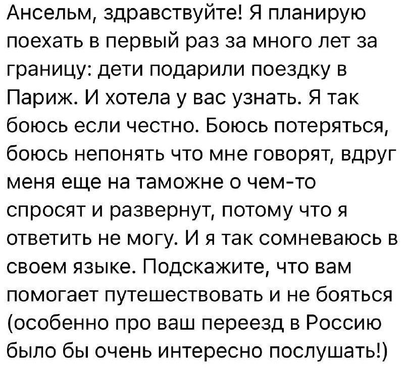 ?» Я чувствовал это перед каждой своей поездкой. Перед поездками в Россию, Таиланд, Корею (особенно перед автостопом по стране, где меня не ждали) И знаете что? Это нормально. Страх перед неизвестностью — это признак того, что вы собираетесь сделать что-то важное. «C’est normal d’avoir peur avant un grand voyage» (Это нормально — бояться перед большим путешествием) Дорога не требует, чтобы вы были готовы на 100%. Она требует только одного, сделать первый шаг. Вы идёте медленно, потом оглядываетесь, находите попутчиков и оказывается, что вы идёте уже быстрее, чем думали. В языке то же самое. — Вы боитесь заговорить, потому что не уверены в словах. — Боитесь, что вас не поймут. — Боитесь, что отстанете, если собеседник заговорит быстро. Но первый разговор — это тот самый первый шаг, и он не требует идеального французского, а требует только смелости попробовать. «Le premier pas est le plus difficile, mais il ouvre toutes les portes» (Первый шаг — самый трудный, но он открывает вс