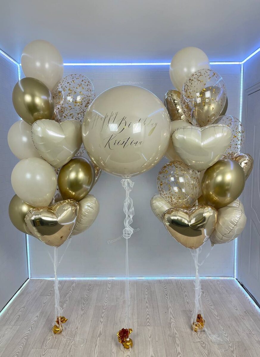 Очень красивый набор из воздушных шаров: два фонтана и стеклянный шар