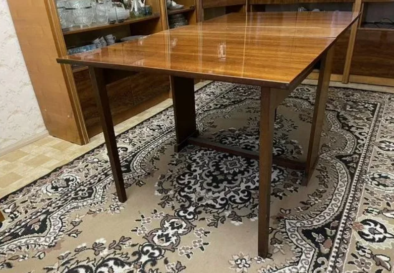 В сложенном виде он занимал минимум места, а когда разворачивался, позволял принимать действительно большие компании. Правда, была у него и пара особенностей. «Глухая» зона посередине, где из-за боковых стенок было крайне неудобно сидеть, часто становилась поводом для споров за столом.
