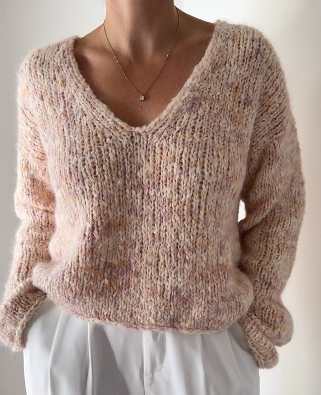 Свитер «Twofold» Дизайн Caidree 2025 by Sabina Harnage перевод #бесплатное_описание Двуслойный свитер — это классический пуловер с V-образным вырезом, свободного кроя, с опущенным плечом. Вязание начинается сверху со спинки. Для создания свитера используются две нити очень пушистой и лёгкой пряжи, чтобы получить тёплое, но лёгкое изделие. Свитер имеет аккуратную деталь на плече и простое закрытие петель, напоминающее косу вокруг горловины, талии и манжет. В выкройку заложена прибавка 10–20 см на свободу облегания. Выбирайте размер в зависимости от предпочитаемой свободы облегания. Варианты пряжи: 1) Семеновская пряжа "Mohair Goat" классическая тонкая, шерсть имп. меринос, мохер, акрил (100 г / 210 м) 2) Пряжа Gazzal ALPACA AIR 58% беби альпака - 14% меринос SW - 28% полиамид (50 г / 150 м) @myknittedstories 🧶 #вязание_спицами #вязание_схема #пуловер Подробное описание в файле по ссылке
