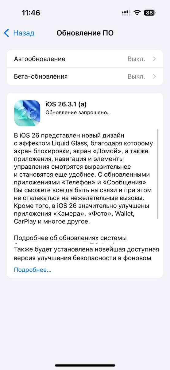 На обновление с iOS 18 меня сподвигли три вещи: 1. Айфон супруги, случайно обновившийся около месяца назад, работает хорошо на iOS 26. У нее 15 Plus, а у меня базовый 15, так что результат должен быть идентичен. 2. Ко мне в руки попали Apple Watch Series 8, которые уже обновлены до watchOS 26 — как многие знают, ни откатить часы, ни подключить их к более ранним ОС нельзя. А попробовать хочется, это первые вотчи в моих руках вообще. 3. Рано или поздно придется обновляться. Так что выдыхаю и обновляюсь… пожелайте мне здоровых нервных клеток 🥲 @jeronimos_tech