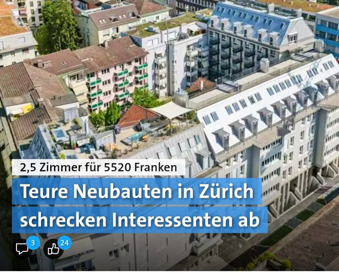 В новом жилом комплексе Living Eleven в районе Oerlikon пустует более половины из 61 квартиры, хотя они готовы к заселению с ноября 2025 года. Сейчас не сданы 34 квартиры. В чём причина? Возможно, дело в очень высоких ценах. 2,5-комнатная квартира (~85 м²) стоит около 5520 франков в месяц даже маленькая 1,5-комнатная (36 м²) — более 2000 франков Также причиной может быть необычная концепция жилья. Квартиры выполнены в формате split-level — с открытой планировкой и несколькими уровнями. Архитектурно это интересно, но для многих может быть неудобно. Поэтому спрос остаётся сдержанным, несмотря на дни открытых дверей. Снижения цен не будет Девелопер не планирует снижать аренду. Причина — высокие цены на землю, строительство и строгие требования. Что говорят эксперты Пустующие квартиры — это сигнал: либо цена слишком высокая, либо формат жилья не подходит рынку При этом доступное жильё в Цюрихе по-прежнему разбирают сразу. Это показывает растущий перекос: дешёвого жилья не хватае