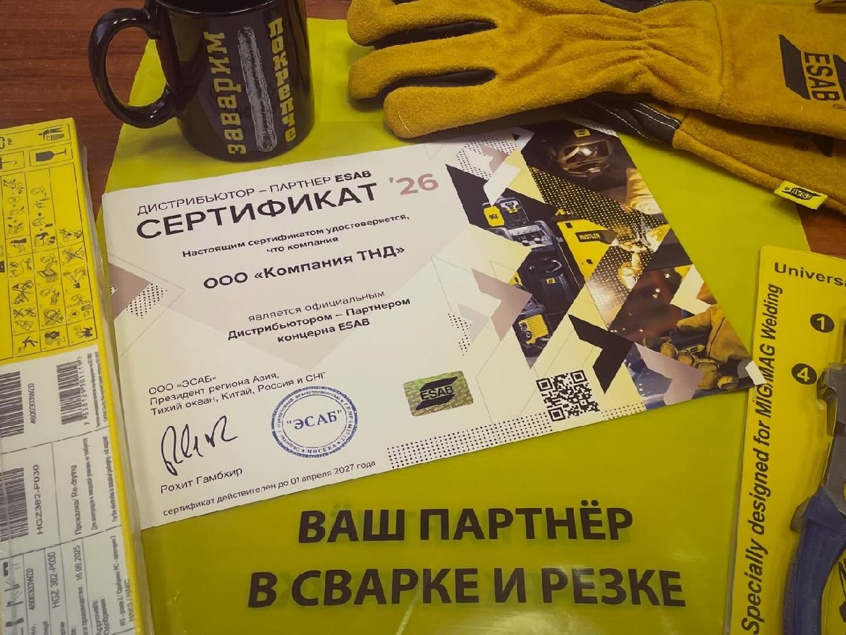 партнёра-дистрибьютора ESAB. Это почётное звание - признание нашей команды, надёжности поставок и экспертизы в сварочном оборудовании и материалах.Мы гордимся этим достижением и продолжаем работать на результат! 💪🔥#ТНД #ESAB #ДистрибьюторESAB #СварочноеОборудование #эсаб