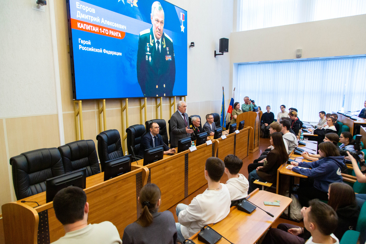 Встречи с Героями СССР и Героями РФ проводятся в УрГЭУ традиционно, в этот раз студенты слушали рассказ Дмитрия Егорова - офицера подразделения Главного управления глубоководных исследований Министерства обороны Российской Федерации, капитана 1-го ранга.