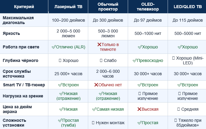 Прежде чем принять решение о покупке, важно понять, как лазерный телевизор соотносится с альтернативами.