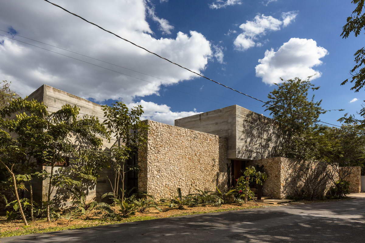 Камень и бетон - это прежде всего сила, прочность и надёжность. Иногда архитекторы стараются смягчить эти внутренние свойства материалов, иногда наоборот - подчеркнуть их. Во втором случае обычно получается мощь и брутальность. Предлагаем вашему вниманию два таких дома из камня и бетона. Дом мастерской расположен в плоской, прямоугольной, но не регулярной местности и принадлежит одному из самых признанных мастеров пластики на Юкатане. Работа этого художника характеризуется тем, что они «божественно искривлены». Несовершенство и спонтанность являются характеристикой, которая подчеркивает отсутствие у художника заботы о деталях, а также подчеркивает силу и чувствительность авторских работ. Проект пытается выразить эти же характеристики в своей физиогномике и формальном обращении. Дом имеет закрытый облик снаружи, представляя из себя серию собранных вместе «коробок», образуя объём, который никогда не раскрывает его содержания. Интерьер освещается и вентилируется через внутренние дворики,