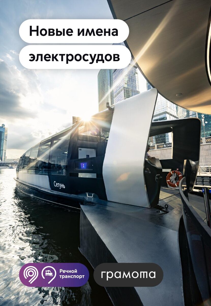 На сегодняшний день флот регулярного речного транспорта насчитывает 31 электросудно. Название каждого из них посвятили малым рекам столицы. В этом году планируем выпустить на маршруты 8 новых электросудов. Делимся их именами в карточках вместе с порталом «Грамота.ру».