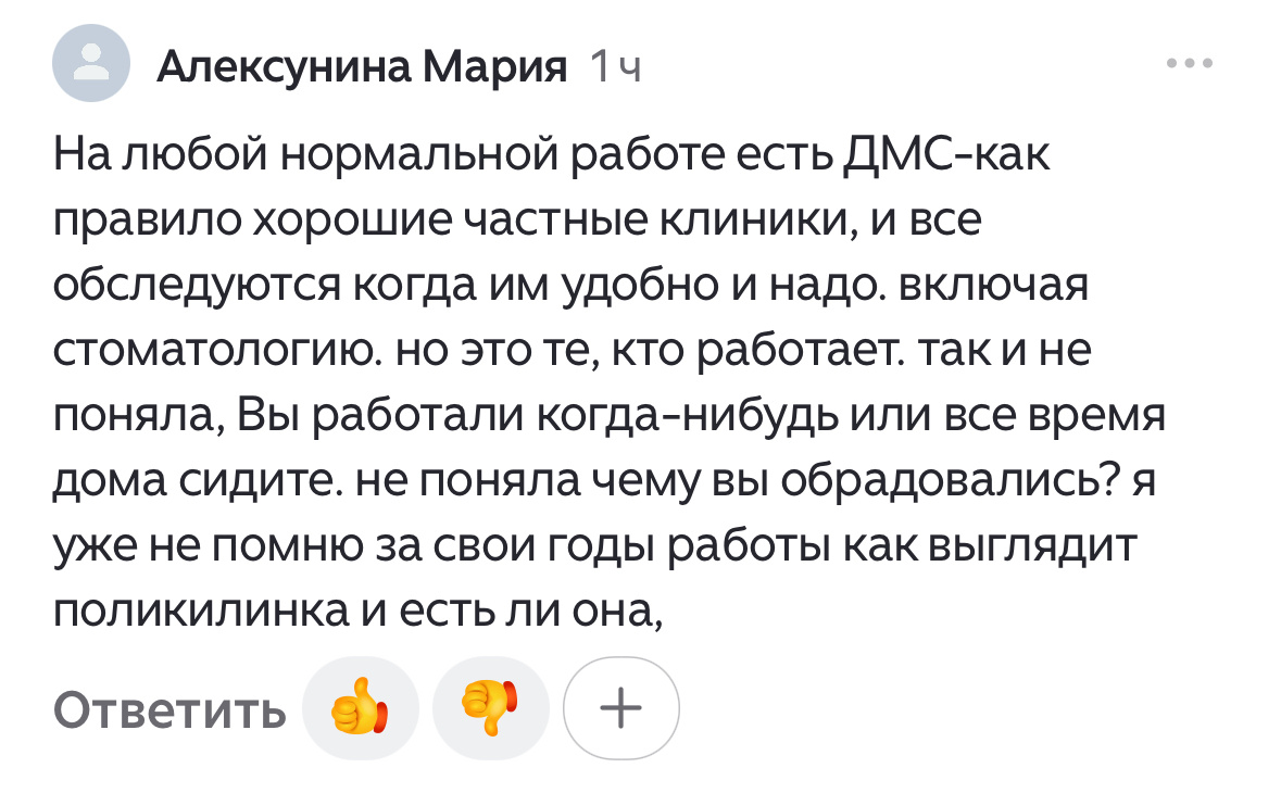 Но все же хочется понять, действительно ли у всех, кто работают официально на нормальных работах, есть ДМС? Расскажите, как у вас с этим дела? И кем вы работаете при этом? Очень уж стало любопытно.