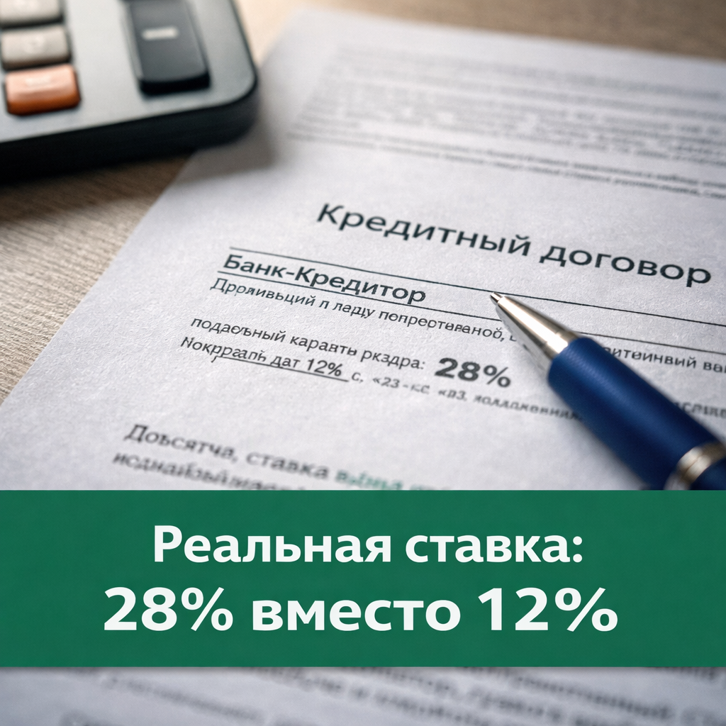 Оля из Краснодара брала потребительский кредит на ремонт. 300 000 рублей, «всего 12% годовых» — так ей сказали в банке. Переплата за год должна была составить 36 000 рублей. Через год посмотрела сколько реально заплатила. Переплата за год составила 63 400 рублей. Почти вдвое больше. Банк не солгал. 12% — это правда. Просто это была не та цифра которую нужно считать. Что такое ПСК и почему банки прячут её мелким шрифтом ПСК — полная стоимость кредита. Это единственная цифра которая показывает сколько вы заплатите на самом деле. По закону банк обязан указывать ПСК в правом верхнем углу первой страницы договора — крупным шрифтом в рамке. Как работает ловушка «низкой ставки» К кредиту автоматически добавили страховку жизни — 1 200 рублей в месяц. Плюс SMS-информирование — 99 рублей. Плюс «пакет финансовой защиты» — 890 рублей в месяц. 2 189 рублей в месяц дополнительных платежей. За три года кредита — почти 79 000 рублей сверху. Попросила ChatGPT: «Помоги рассчитать реальную стоимость кред