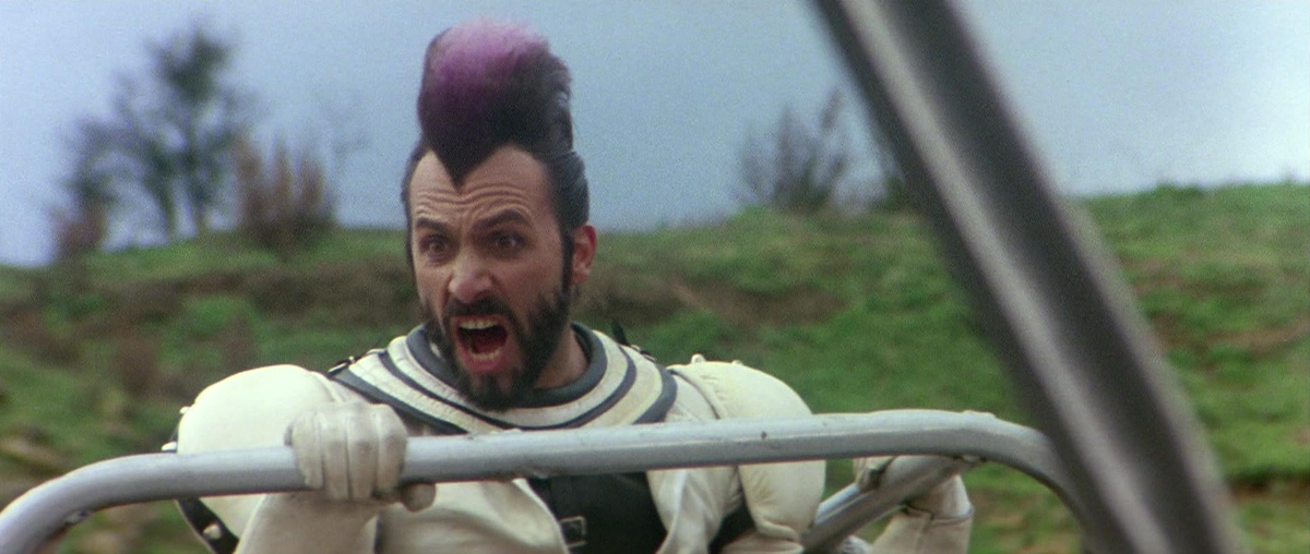 Местного Мела Гибсона, который бросает вызов постапокалиптическим метросексуалам, зовут Скорпион, а играет его Джанкарло Прете — этот итальянский жеребец много снимался у Кастеллари в 1970-е и 1980-е, а в 1983 году сыграл главную роль в фильме Антонио Маргеретти «Торнадо: Последняя кровь». И причёсан он тоже отлично. Вы только посмотрите, какой профиль: ни дать ни взять Гай Юлий Цезарь.