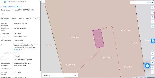 Название: Земельный участок с кадастровым номером 51:08:0050104:162 площадь 60 по адресу Российская Федерация, Мурманская область, городской
