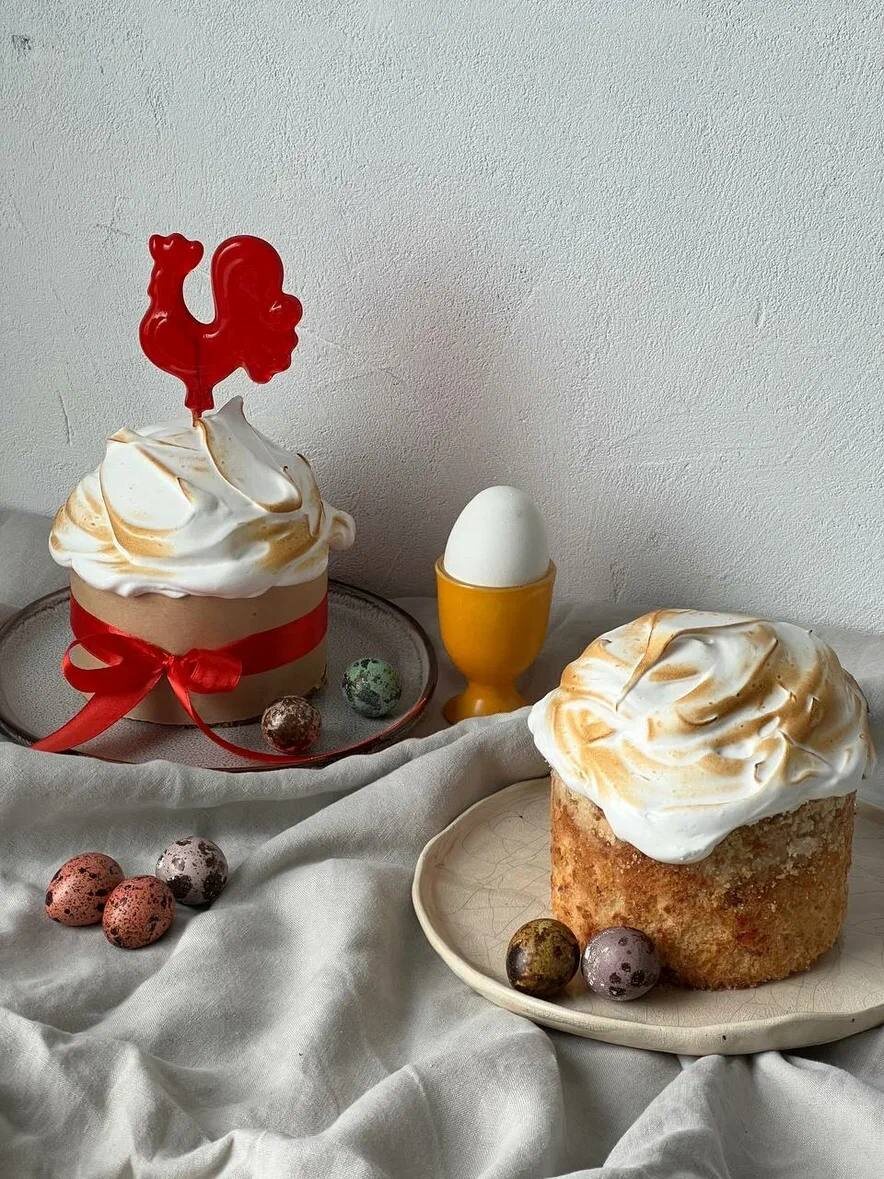 🥧 Накануне светлого праздника Пасхи расскажем о трендах декора для кулича — 2026 ⤵️ А нашим рецептом кулича поделимся позже (следите за публикациями!). 🐦🔥Карамельный петушок Не выходящий из моды русский стиль дает чувство подлинности, тепла и уюта. Карамельные петушки легко крепятся на кулич благодаря палочке, на которой они находятся, и сразу задают праздничную атмосферу. А если хочется необычного яркого цвета, можно использовать форму для петушка, сварить карамель и добавить в нее любой краситель. 🤍 Ничего, кроме белого Кулич в духе миниализма? Да, классическое изделие без замысловатого и сложного декора — в топе! Во-первых, дает возможность наслаждаться идеальной формой и белизной, во-вторых, празднично и впишется в любую сервировку стола. Тотально белая глазурь смотрится актуально, нежно и торжественно! 🌸 Цветы Живые цветы, вафельные или из крема на куличе смотрятся непривычно, но очень по-весеннему. Для кремовых цветов идеально подойдет белково-заварной крем. 🪺Гнездо с