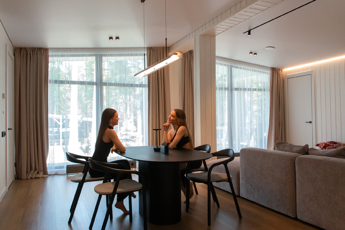 Надёжный деревянный каркас, качественный утеплитель KNAUF, энергоэффективные окна, защита от влаги и ветра — всё это создаёт комфортное пространство для жизни в любое время года.