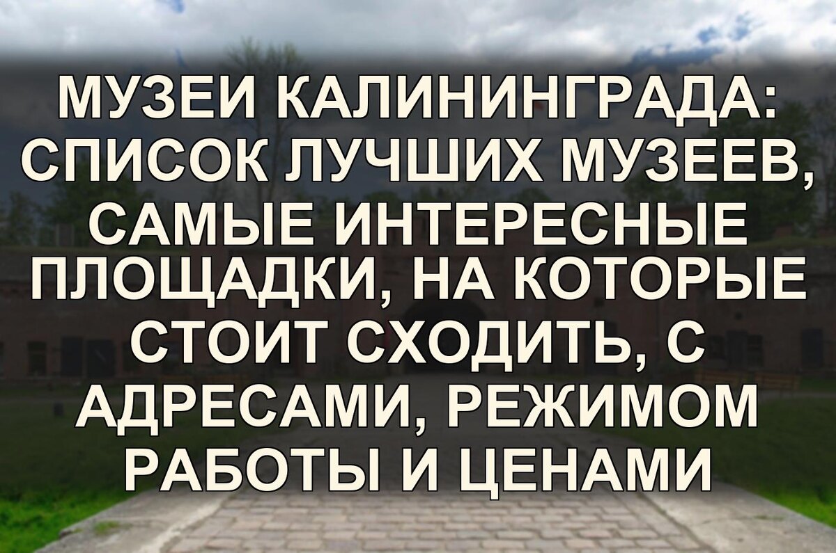 В этой статье мы собрали для вас список лучших музеев Калининграда, куда стоит заглянуть каждому, кто хочет лучше узнать этот уникальный край. Вы найдете адреса, режим работы и цены на билеты, что поможет вам с лёгкостью спланировать своё путешествие по музеям. Исследуйте интереснейшие выставки и радуйтесь открытиям, ведь культурное наследие Калининграда ждет вас!