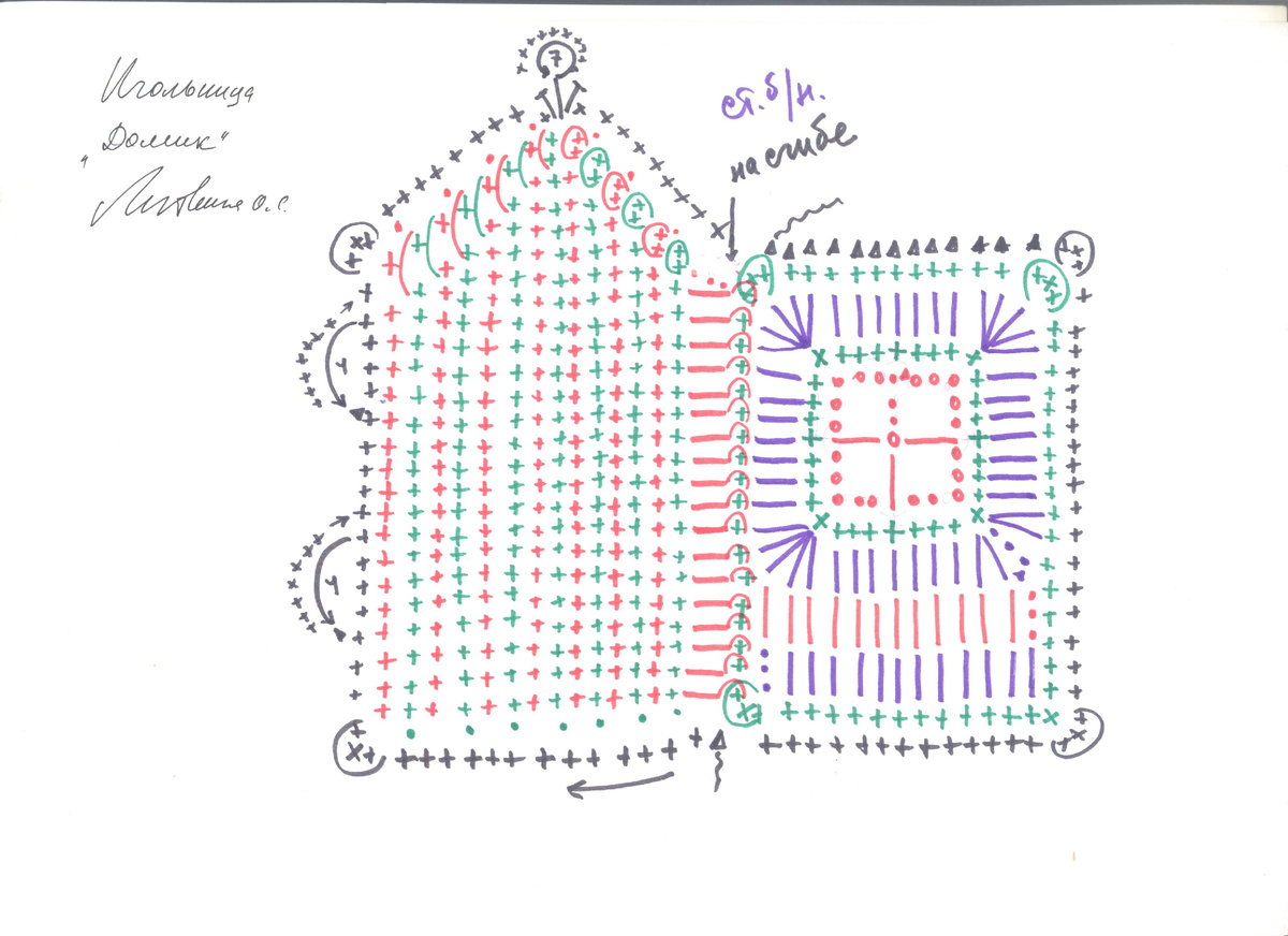 Шляпка. Свяжите столбиками без накида плоский круг с прибавками в шести местах диаметром 3,0 см. Затем провяжите без прибавок три - четыре ряда - ровная часть шляпки. Последний ряд провяжите отделочной нитью. Продолжайте вязание полей шириной 3,0 см. В точку введения отделочной нити пришейте цветочек. Заполните колпачок шляпки, свёрнутой "рулетом" полоской синтепона, шириной 1,5 см, длиной 2,5 см. Свяжите плоский круг диаметром 9,0 см. Вырежьте из картона круг диаметром 9,0 см. Соедините поля шляпки с плоским кругом одним рядом из столбиков без накида отделочной нитью, вставляя между ними картонный круг.