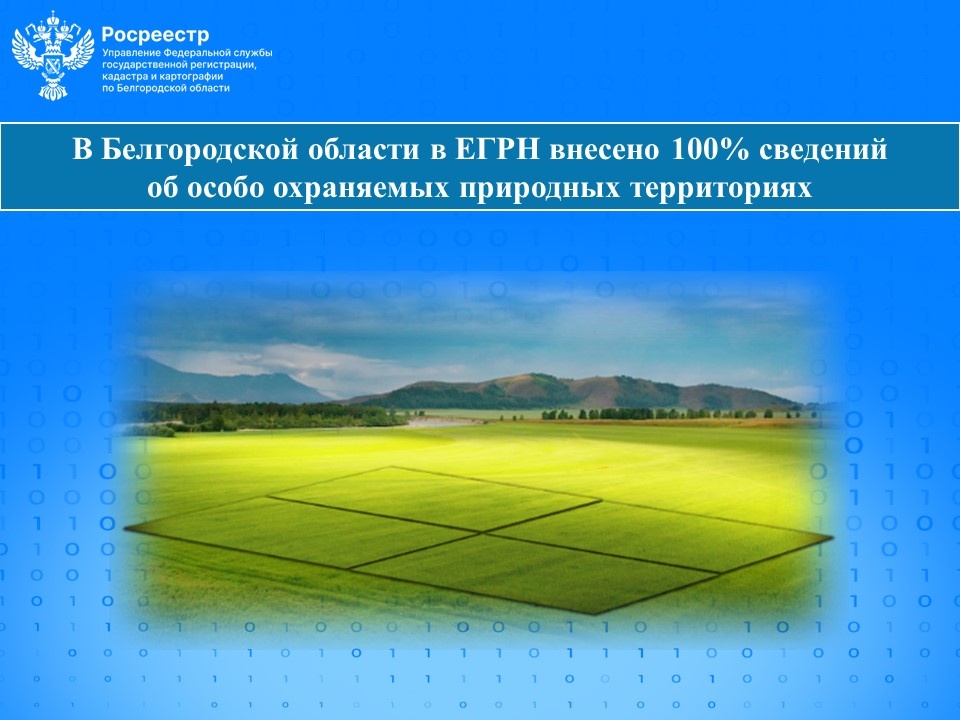 На сегодняшний день в Белгородской области в ЕГРН внесено 100% сведений об особо охраняемых природных территориях (ООПТ). ООПТ – это участки земли, водной поверхности и воздушного пространства над ними, где располагаются природные комплексы и объекты, имеющие особое природоохранное, научное, культурное, эстетическое, рекреационное и оздоровительное значение.