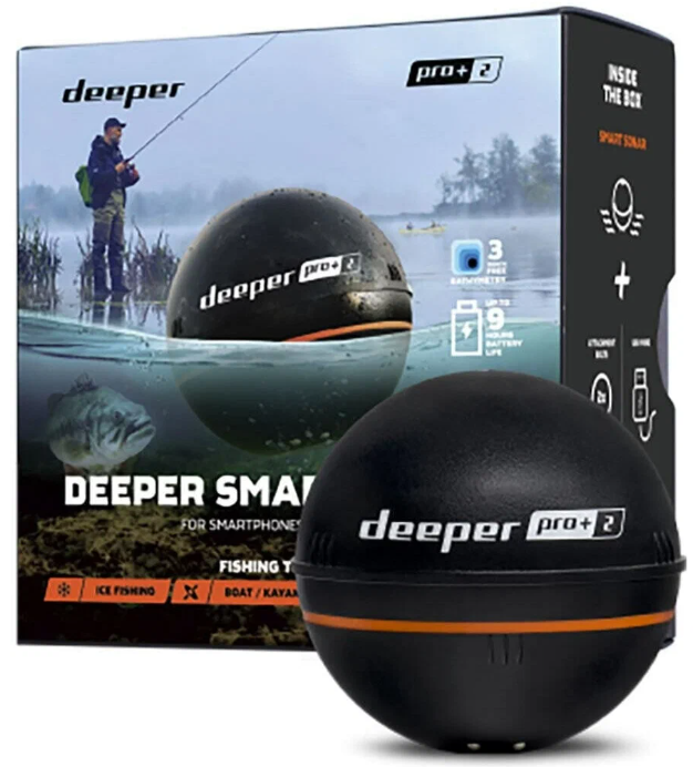 Самый продвинутый забрасываемый эхолот. Wi-Fi соединение до 100 м, встроенный GPS для построения карт глубин прямо с берега, отличная детализация (двухлучевой + CHIRP-подобный режим). Работает летом, зимой и на лодке. Реальные тесты: рыба у дна видна чётко даже на 40–50 м, карты сохраняются в приложении Fish Deeper. Плюсы: высокая точность, карты дна, морозо