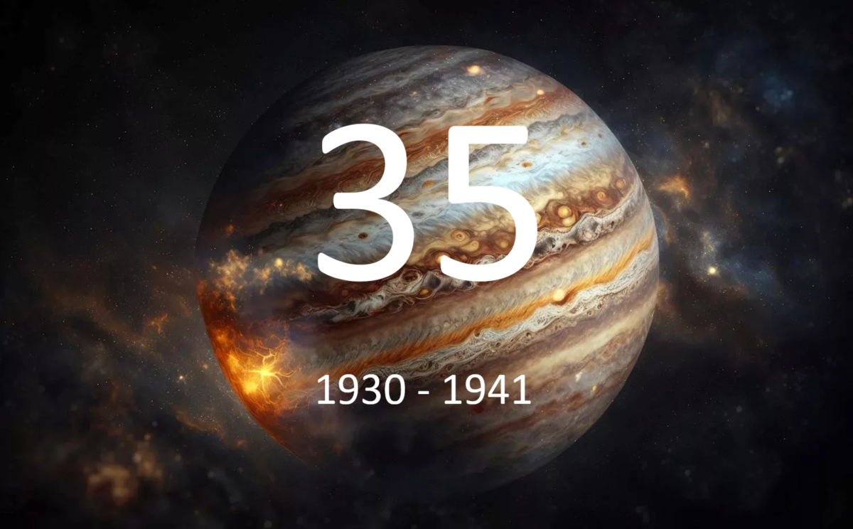 23 июня 1930 входит в созвездие Близнецов 3 июля 1931 входит в созвездие Рака 7 октября 1931 входит в созвездие Льва 14 февраля 1932 возвращается в созвездие Рака 2 июня 1932 входит в созвездие Льва 15 декабря 1932 входит в созвездие Девы 1 февраля 1933 возвращается в созвездие Льва 3 августа 1933 входит в созвездие Девы 10 ноября 1934 входит в созвездие Весов 16 ноября 1935 входит в созвездие Скорпиона 9 декабря 1935 входит в созвездие Змееносца 10 ноября 1936 входит в созвездие Стрельца 14 декабря 1937 входит в созвездие Козерога 18 апреля 1938 входит в созвездие Водолея 29 августа 1938 возвращается в созвездие Козерога 7 декабря 1938 входит в созвездие Водолея 9 апреля 1939 входит в созвездие Рыб 16 июня - 13 сентября 1939 и 31 января - 14 февраля 1940 в Ките, остальные дни в Рыбах 13 мая 1940 входит в созвездие Овна 24 апреля 1941 входит в созвездие Тельца