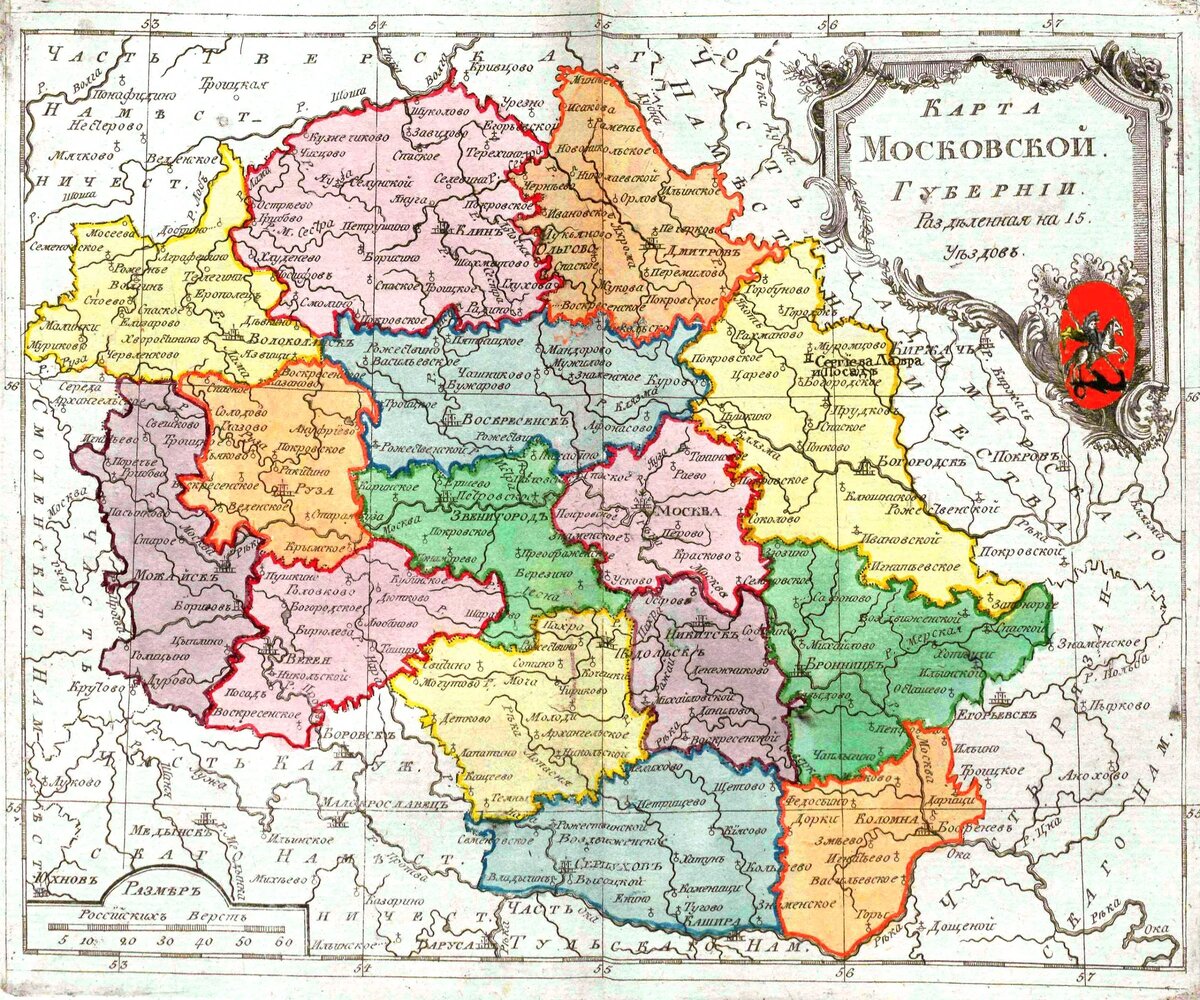 📷 Фото 1: Старая карта Московской губернии с селом Отрадное (XIX век).