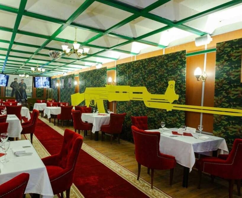 «Генеральский» зал в ресторане «Бункер-42» — это уникальное пространство с подчеркнутой военной стилистикой и советской эстетикой.