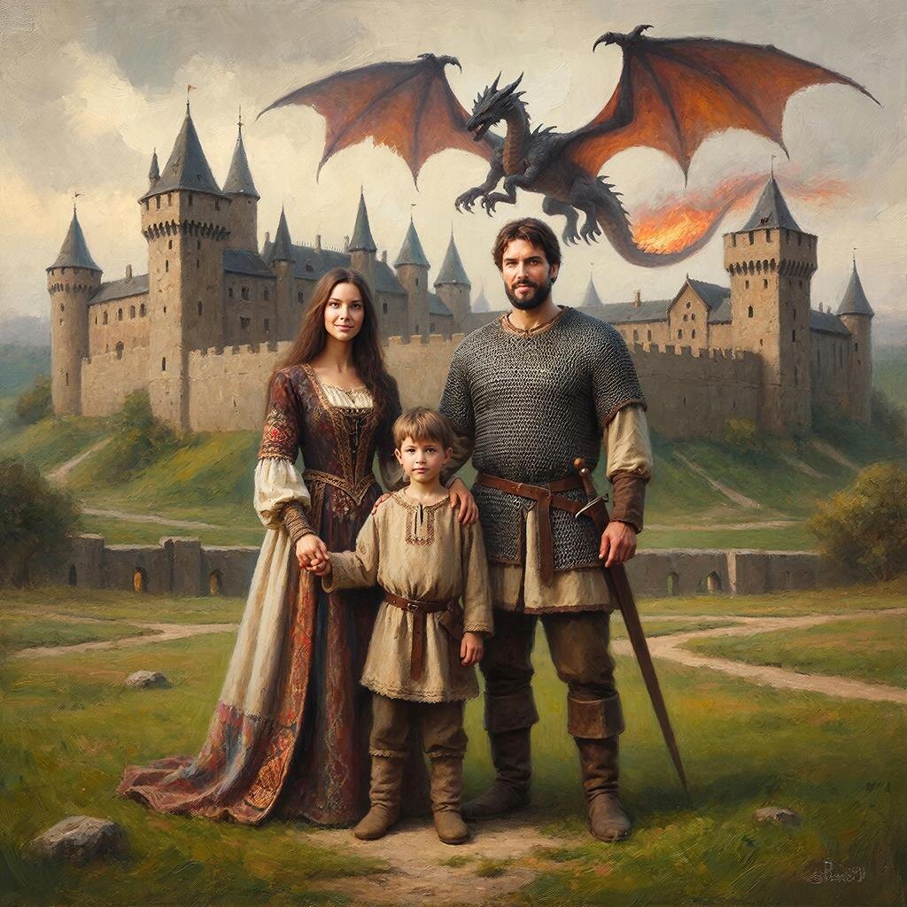 - Ага, - с улыбкой кивнул Олег, - а на заднем плане, чтобы замок и дракон! А то мама обидится!