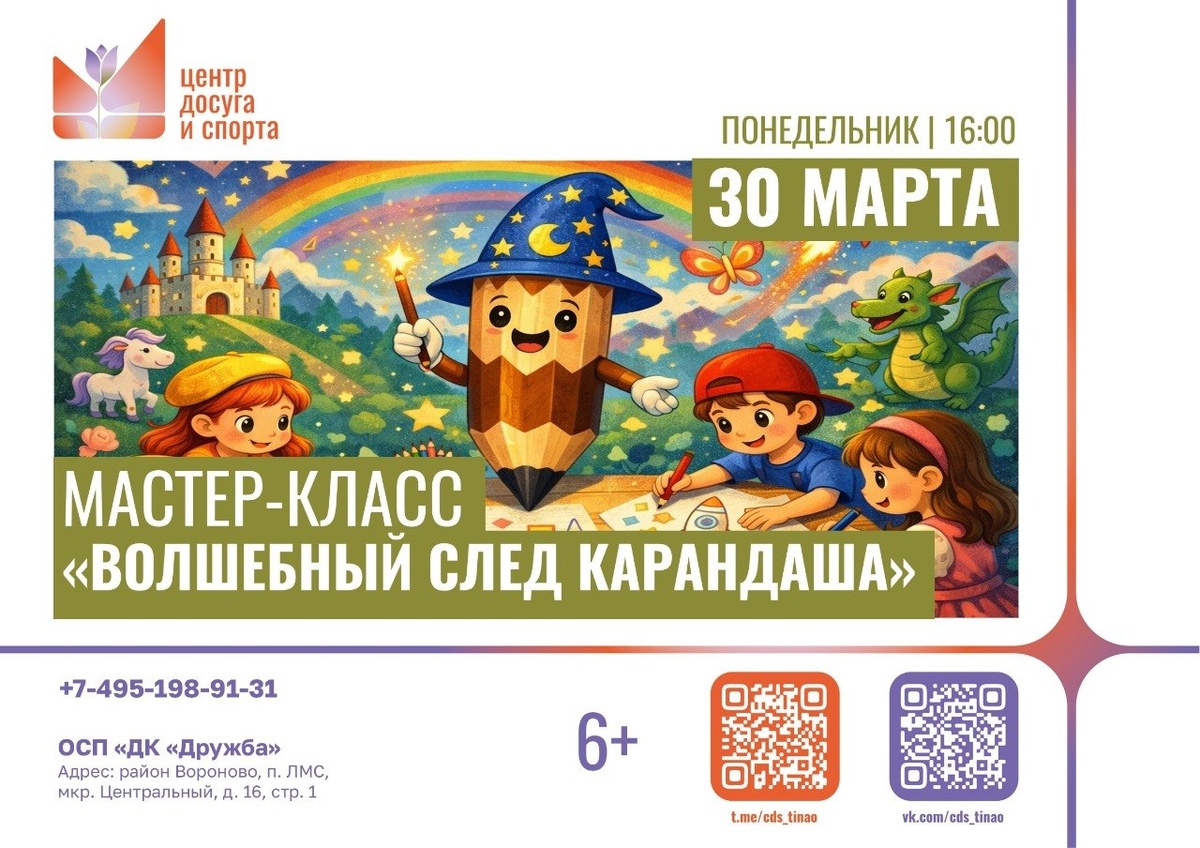 ! ✨🎨 В честь Международного дня карандаша мы устраиваем волшебное занятие, где простой карандаш станет настоящим инструментом творчества! 💫 Что будет на мастер‑классе: 🖍 познакомимся с возможностями простого карандаша, 💭 пофантазируем и дадим волю воображению, 🔎 поэкспериментируем с линиями и штрихами, 🖼 создадим свой уникальный рисунок! Пусть ваш ребёнок откроет для себя магию рисования — один штрих за другим! 😍 #анонсывороново #анонсытинао
