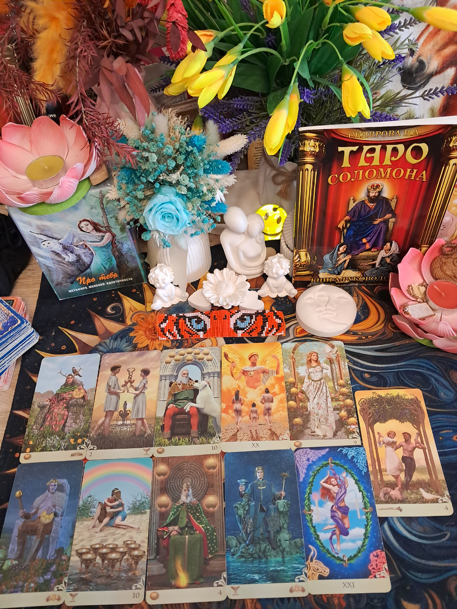 · 10 пентаклей — карта рода, наследства, укорененного богатства. Она говорит, что этот союз (или этот дар) имеет глубокие корни, он не случайный.